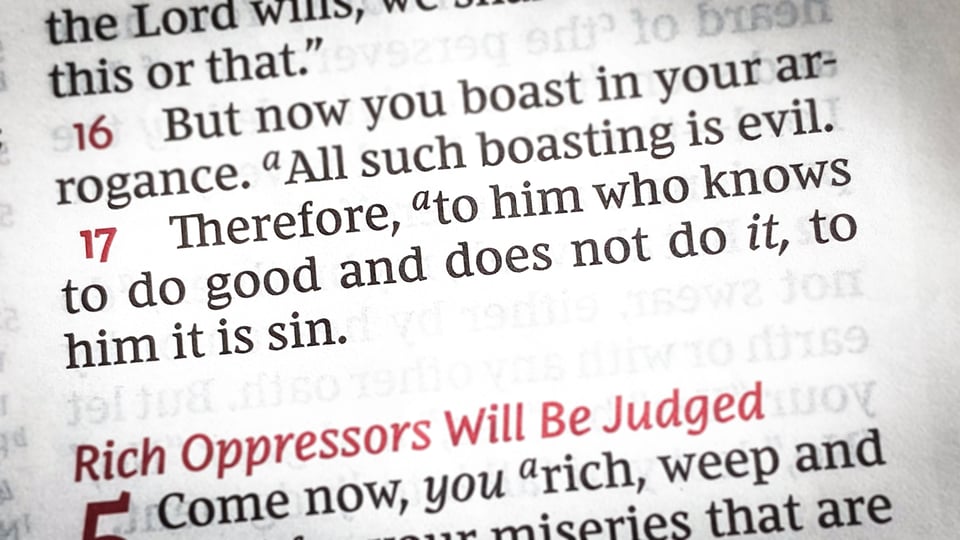 In James 4:17, he writes: “Therefore, to him who knows to do good and does not do it, to him it is sin.”
