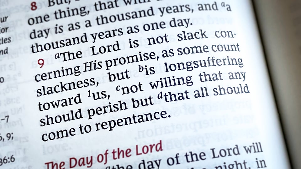 "The Lord is not slack concerning His promise, as some count slackness, but is longsuffering toward us, not willing that any should perish but that all should come to repentance."