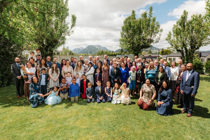 A group of Feastgoers gather for a group picture in Lake Taupo, New Zealand.
