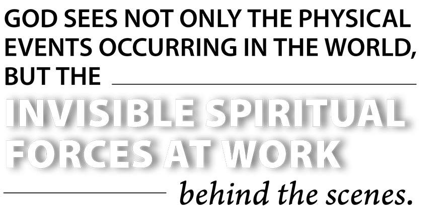 To comprehend God’s plan, we must understand God’s point of view, a necessary element to a good story. God sees not only the physical events occurring in the world, but the invisible spiritual forces at work behind the scenes.