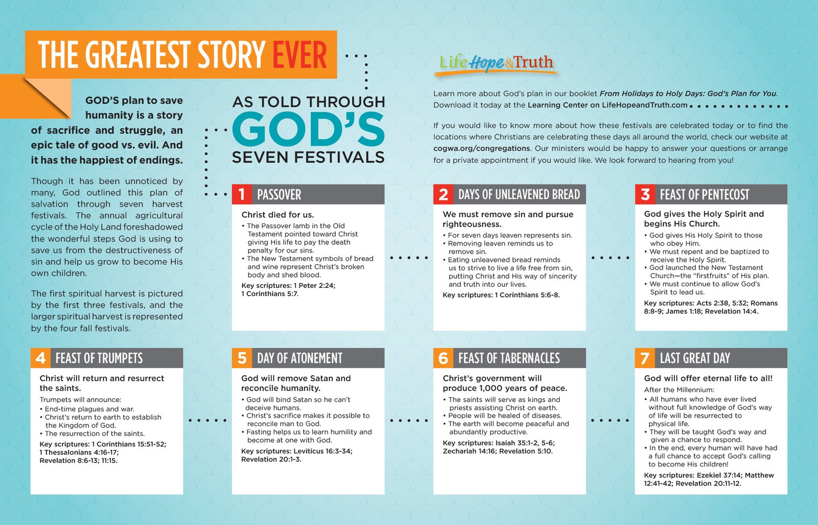 Each year when the Church of God observes these seven annual festivals, we are retelling this wonderful story. It has all the elements of a great book—setting, plot, hero or main characters, conflict, point of view, overall theme and conclusion.
