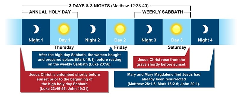 You can learn more in the section “Holy Days vs. Holidays.” You can also see a more detailed infographic on the “Chronology of Christ’s Crucifixion and Resurrection” on our infographics page.