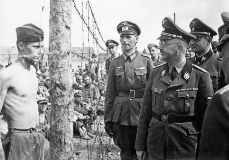 Architect of terror. Heinrich Himmler, head of the infamous SS, inspects a prisoner-of-war camp in Russia in 1941. Walter Frentz/National Archives at College Park (NARA Identifier: 540164) via Wikimedia Commons